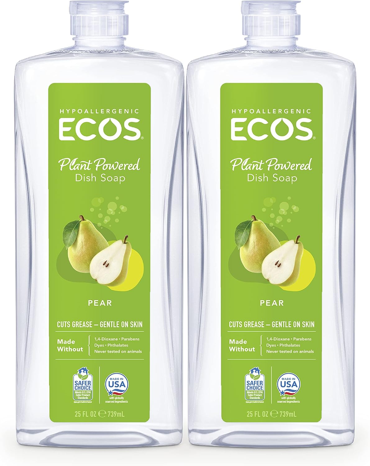 ECOS® Dish Soap, Natural Pear – Hypoallergenic, Plant-Powered, Biodegradable Grease-Cutting Formula (Pack of 2 x 25 fl oz)